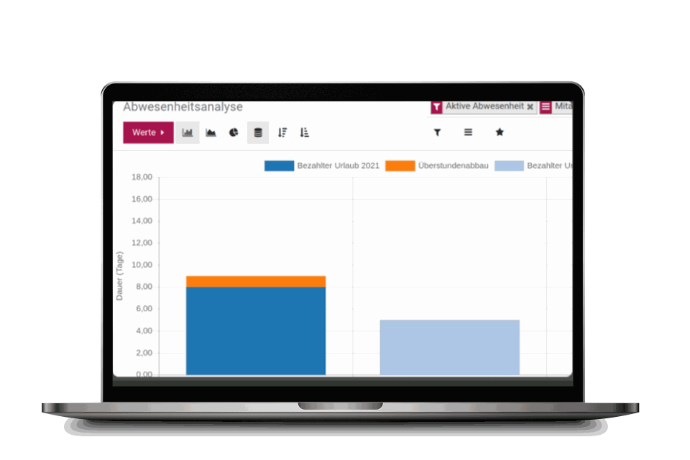 With our advanced attendance time comparison feature, compare actual worked hours against your company’s working time model.