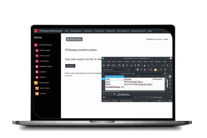Experience full control of your business software suite with ITISeasy.control-center.