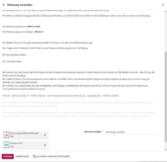 Outgoing e-invoices are enriched with XML for legal compliance